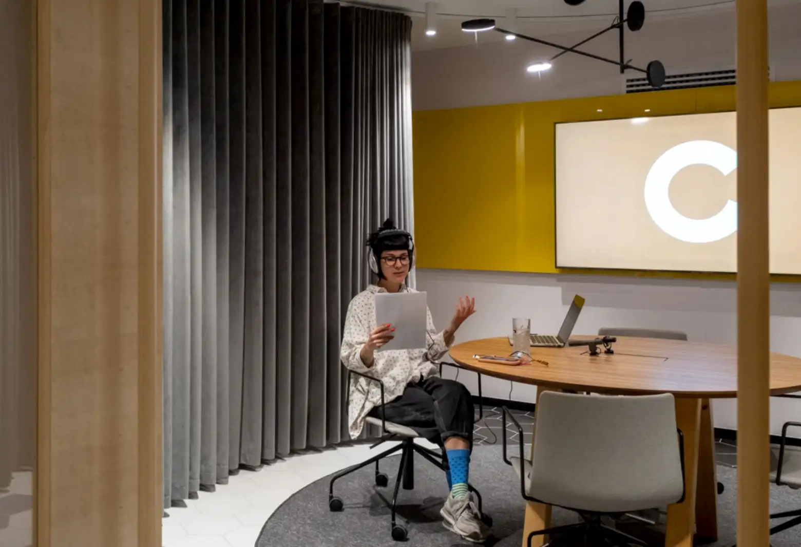 Profesyonel ses kayıt donanımı, ses yalıtımı, monitör düzeni ve duvar yazı panelleri ile istediğiniz gibi üretebileceğiniz ve ürettiklerinizi paylaşabileceğin bir oda burası. Kısacası, bir podcast odasından bekleyeceğin her şey sizin için burada organize edildi.