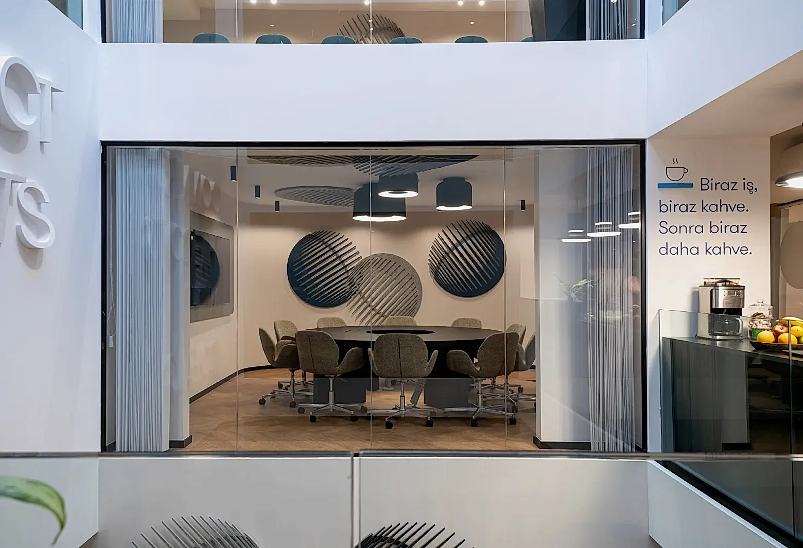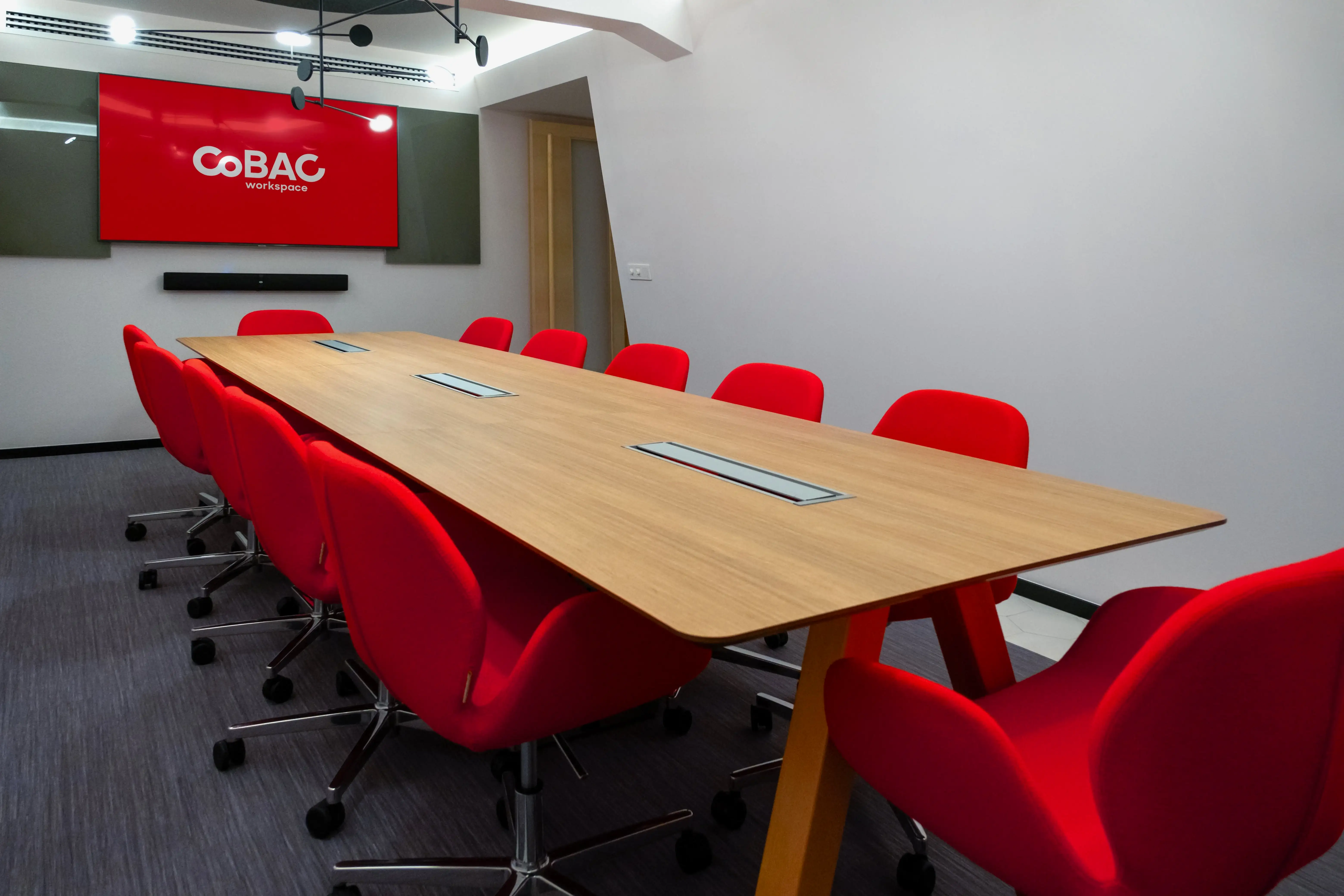 Akıllı tahtadan TV sistemine, ses izolasyon panellerinden konferans düzenine teknik donanımı tam yerinde keyif dolu toplantı odaları.